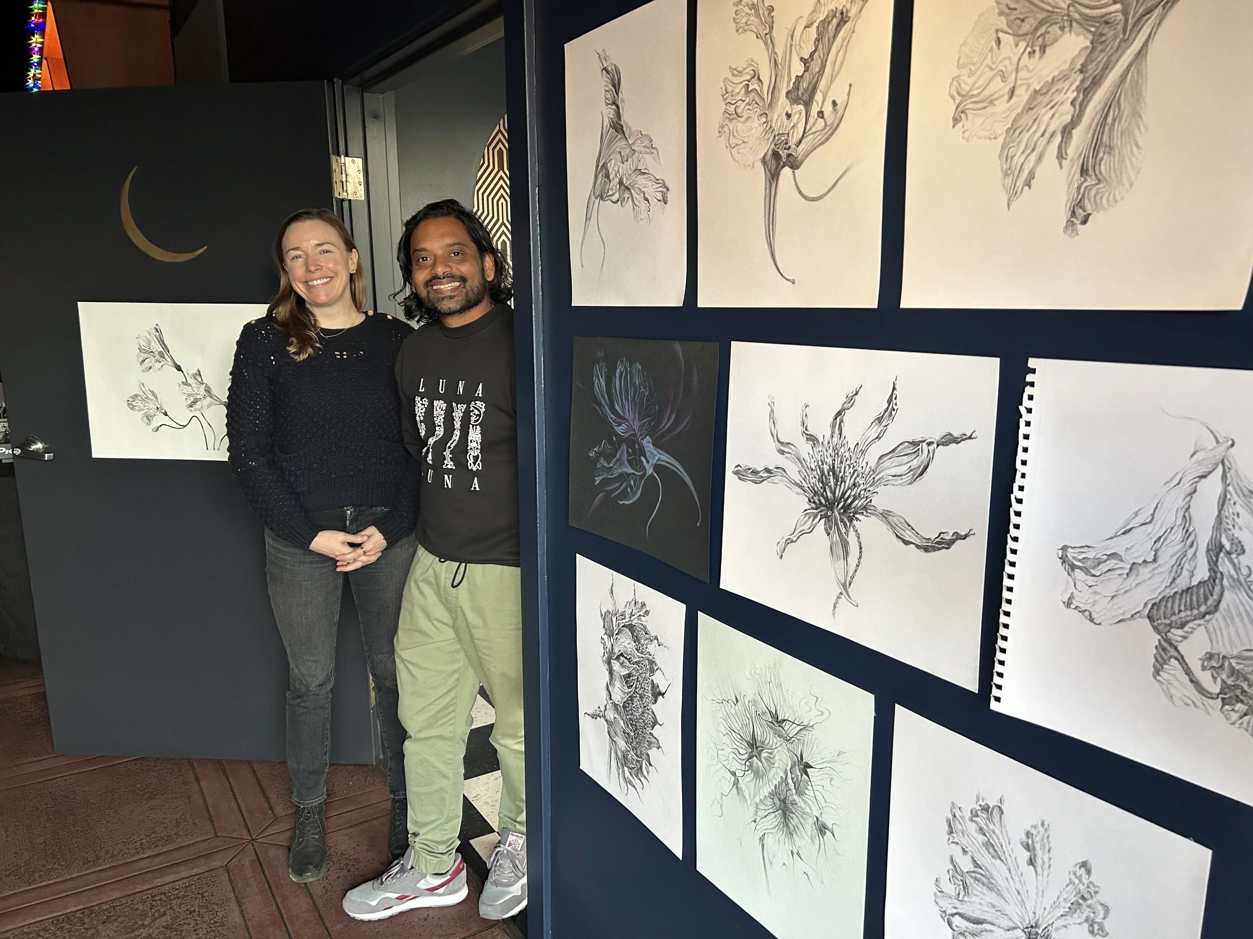 Each month we have a featured artist who gives a short artist talk and brings something for attendees to interact with if they choose.